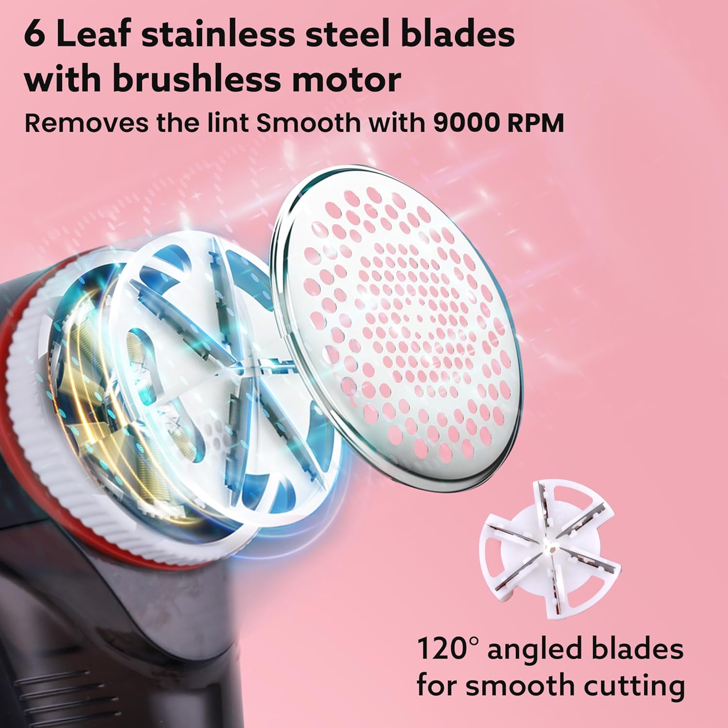 - 6 leaf stainless steel blades eliminates the lint smoothly and prevents the fabric from getting damaged